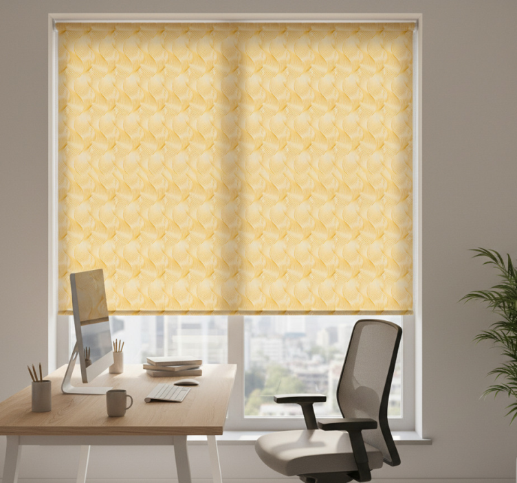 The Office roller blind gold foil wave effect office roller blind is a perfect choice for those looking to elevate their interior decor. Its unique design brings a touch of glamour and sophistication to any office or living space, inspiring creativity and productivity. By incorporating this roller blind into your decor, you not only protect your space from harsh sunlight but also add a stylish element that complements your furniture and color scheme. Imagine a workspace that feels both inviting and professional!