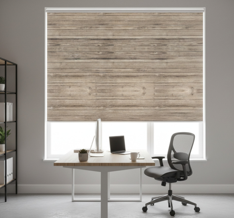 Office roller blind gray rustic wood planks