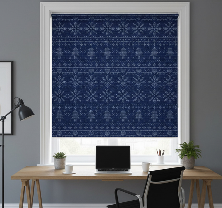 The Office roller blind in navy blue christmas knit office roller blind is more than just a functional window treatment; it is a statement piece that enhances the overall aesthetic of your space. Imagine how this vibrant navy blue knit design can bring warmth and cheer to your office, creating a cozy environment that inspires creativity and productivity. With its beautiful texture and color, this roller blind effortlessly transforms any dull space into a festive haven, making it a must-have for your holiday decor!