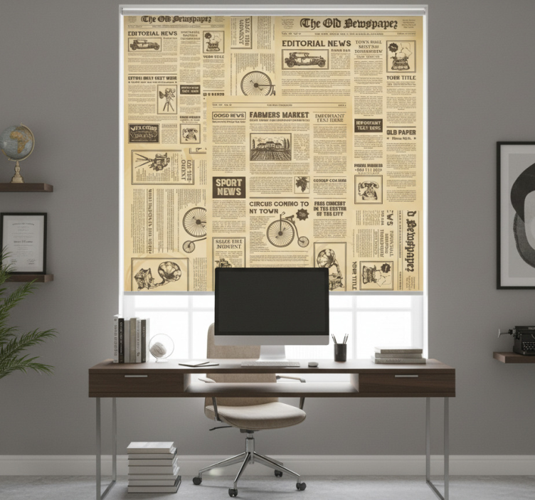 The Office roller blind vintage american newspaper print office roller blind is not just a window covering; it's a statement piece! Imagine the charm and character it adds to your office or living space. This roller blind serves as a perfect backdrop for your decor, enhancing the visual appeal while providing functionality. It creates a warm atmosphere where creativity flourishes and productivity thrives. Elevate your interior with this exquisite design that combines style and practicality!