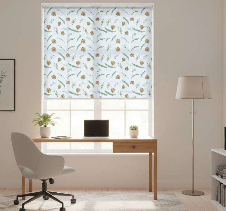 Office roller blind watercolor floral blue
