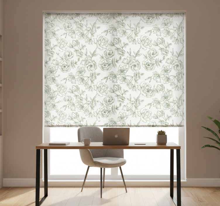 Office roller blind white roses