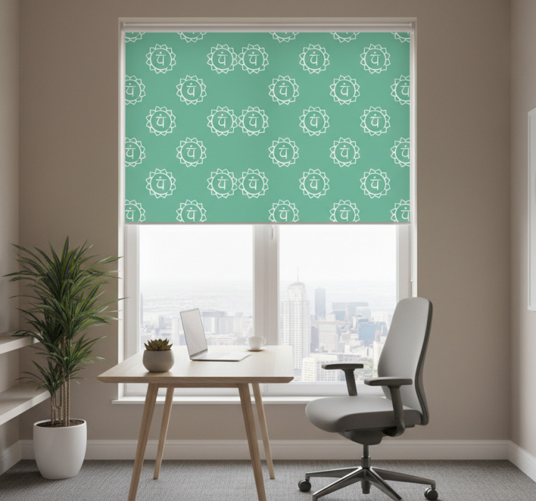 Office roller blind with beautiful heart chakra symbol