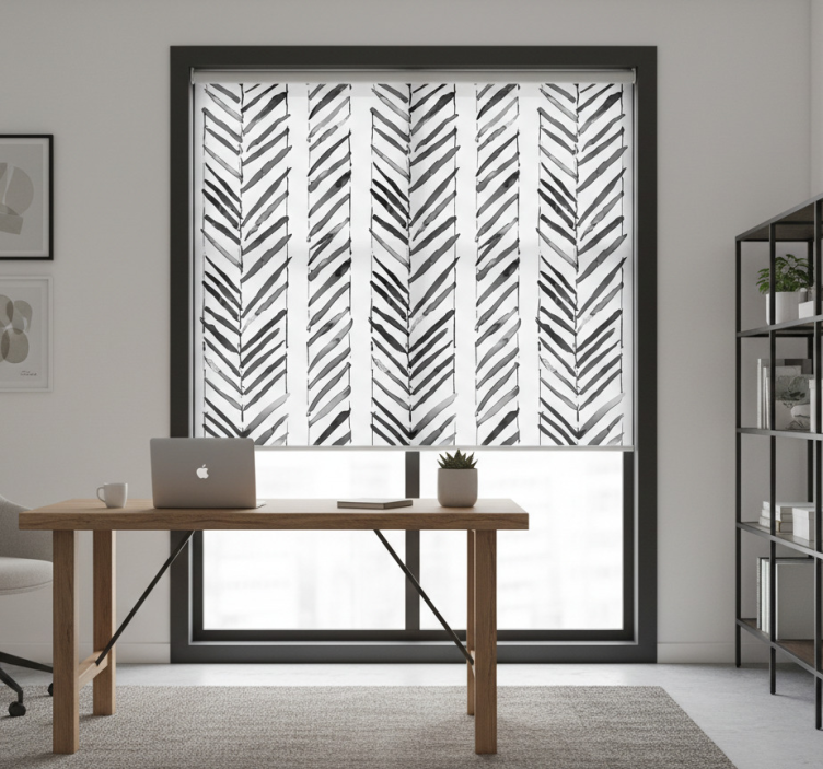 Office roller blind with black and white geometric design