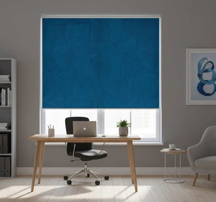 Office roller blind with blue geometric pattern