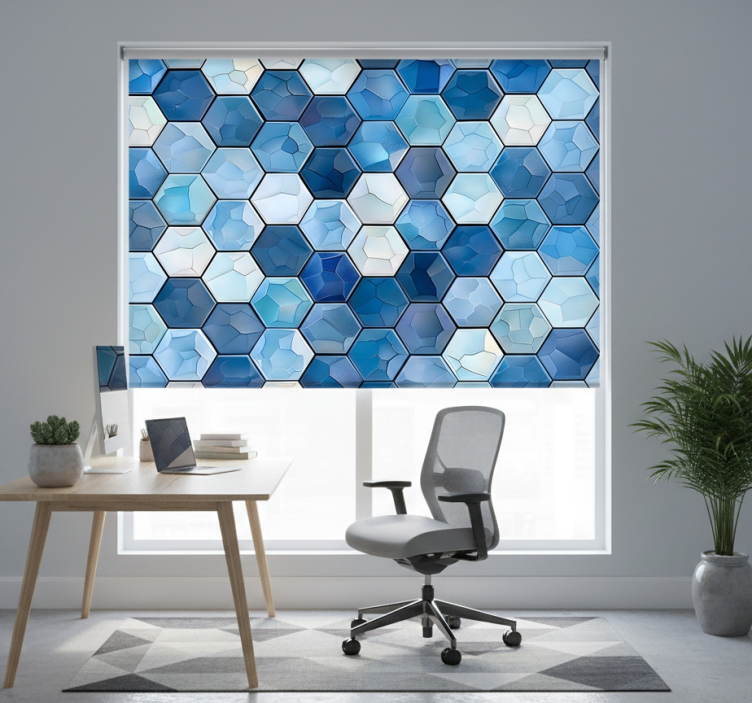 Office roller blind with blue tile design