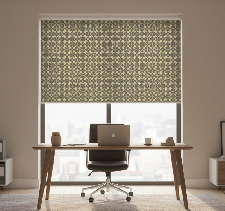 The Office roller blind with elegant gold designs office roller blind is perfect for those looking to elevate their interior aesthetics. Its elegant gold patterns effortlessly blend with various decor styles, making it a versatile addition to any office. This roller blind not only beautifies your workspace but also creates a warm and inviting atmosphere that inspires creativity and productivity. Transform your office into a stylish haven with this stunning piece!