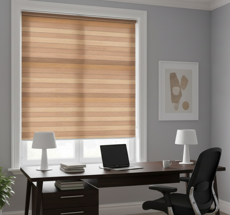 Office roller blind with elegant rustic wood design
