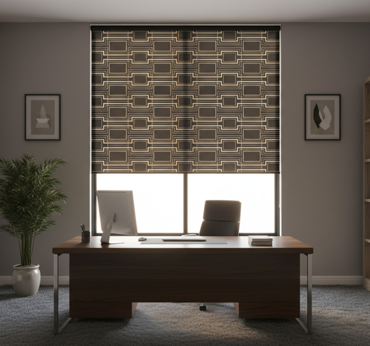 The Office roller blind with linear rectangular shapes office roller blind is more than just a functional piece; it's a decorative element that elevates your office space! Its sleek design adds a touch of elegance, making it an ideal choice for anyone looking to create an inspiring work atmosphere. With customizable textures and light-filtering options, this roller blind not only enhances the aesthetic appeal but also empowers you to regulate room temperature and enjoy the perfect balance of light and privacy. Transform your workspace into a haven of creativity!