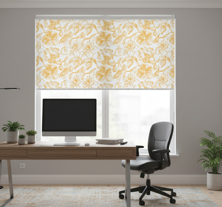 Office roller blind with yellow orchid pattern
