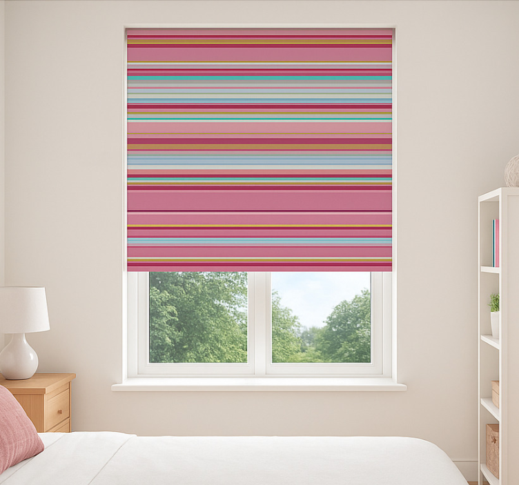 Reference: E5856Introducing our stunning Pink Stripe Pattern teenage roller blind, a perfect blend of vibrant colors and stylish design! This beautiful roller blind features a delightful pink stripe pattern that adds a cheerful touch to any room. The playful design not only enhances the aesthetic appeal of your space but also offers practical benefits. With easy assembly and disassembly in just two clicks, cleaning becomes a breeze! Enjoy the benefits of light control, privacy, and temperature regulation, all while keeping your home stylish.