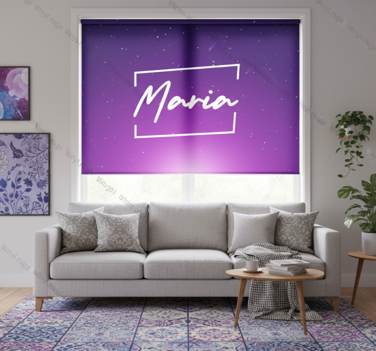 Purple roller blind purple galaxy with name