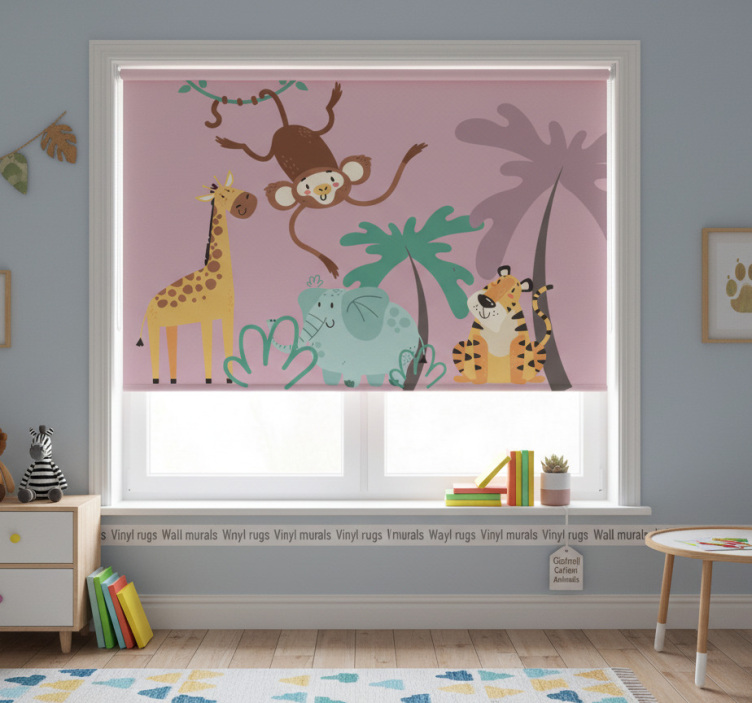 Purple roller blind with colorful safari animals