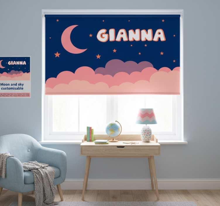 Purple roller blind with customizable moon and sky