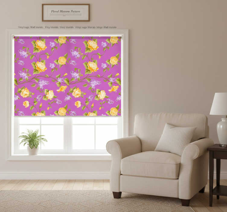 Purple roller blind with floral blossom design