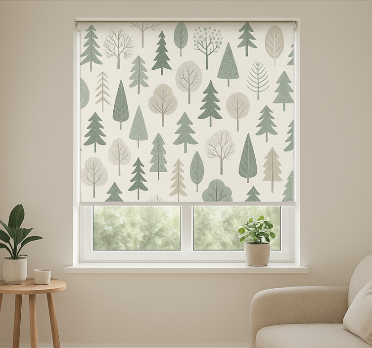 Reference: E6083Introducing our Skandinavian roller blind calming scandinavian forest, a stunning fusion of nature and design! This exquisite roller blind features a serene forest landscape, creating a tranquil atmosphere in your home. Its gentle tones and organic shapes evoke a sense of calm, making it the perfect addition to any room. The design not only enhances your decor but also contributes to a peaceful living environment.