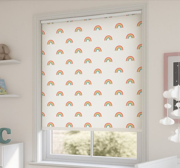 Reference: E6081Introducing our stunning Skandinavian roller blind colourful cascading rainbows, a delightful fusion of vibrant hues and modern design. This roller blind showcases a mesmerizing pattern of cascading rainbows, bringing a splash of color and joy into any room. The visually captivating design not only enhances your decor but also features easy assembly in just 2 clicks, effortless cleaning, and convenient disassembly to ensure your windows remain spotless.