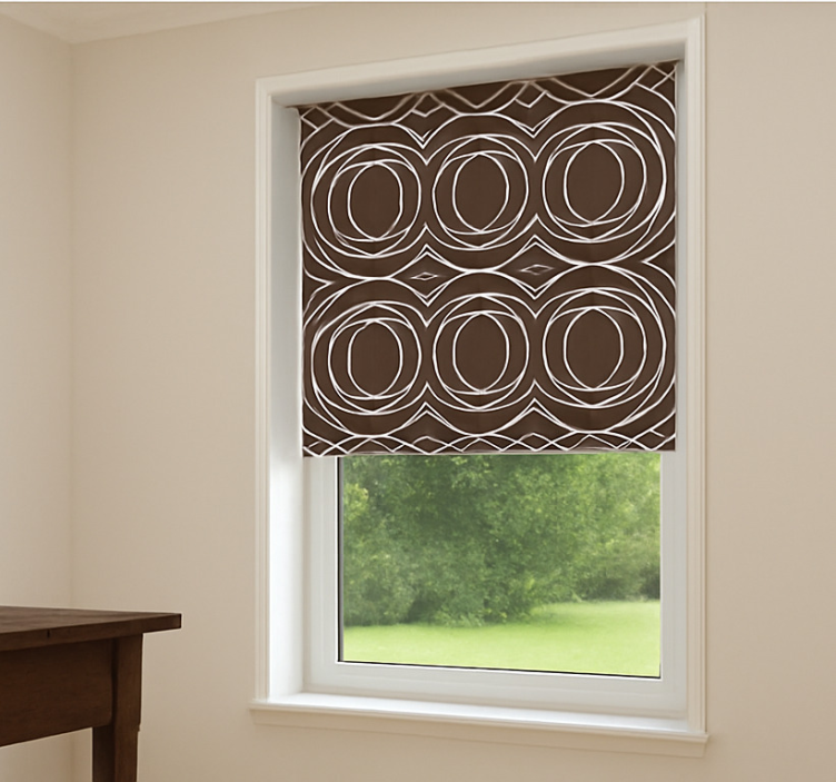 Reference: E6086The Skandinavian roller blind modern intertwined circles features a stunning design that brings together contemporary aesthetics with a touch of elegance. The graphic pattern showcases beautifully intertwined circles, creating a harmonious flow that enhances any room's atmosphere. With its easy assembly in just two clicks, this roller blind is not only visually appealing but also practical, making cleaning a breeze. It protects your space from direct sunlight while ensuring privacy, all while allowing you to maintain control over the room temperature.