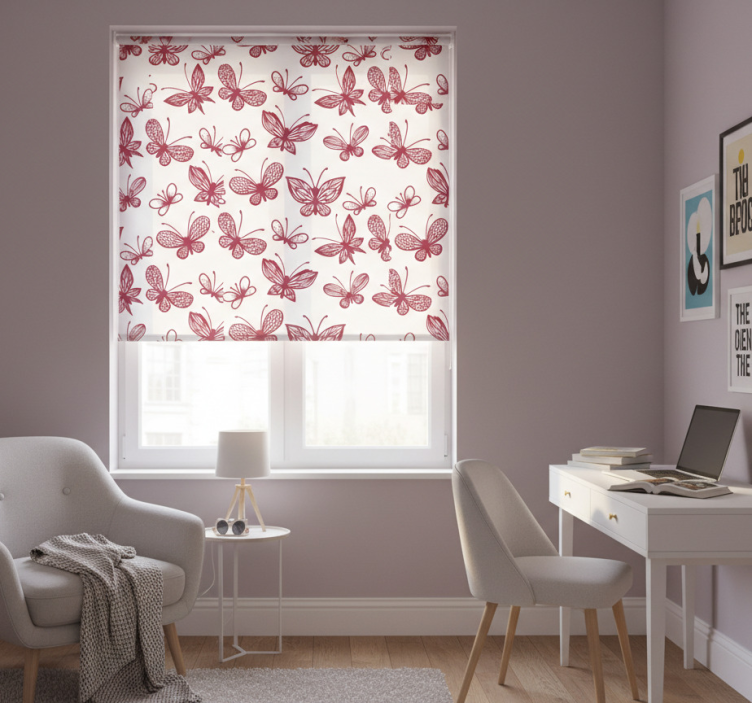 Teenage roller blind with elegant red butterfly pattern