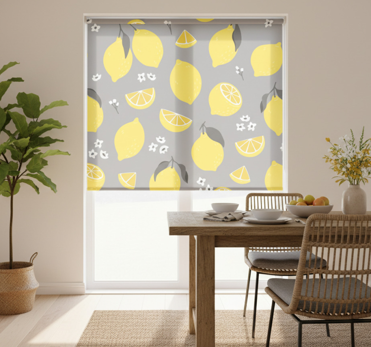 The Tropical lemon dining room roller blind is the ideal choice for elevating your interior design! Its eye-catching design adds a splash of color and vibrancy, transforming your dining area into a lively space. By incorporating this dining room roller blind into your decor, you not only enhance the beauty of the room but also create a warm and inviting atmosphere for gatherings and family meals. Let the cheerful lemon motifs inspire joy and conversation as you enjoy your dining experience!
