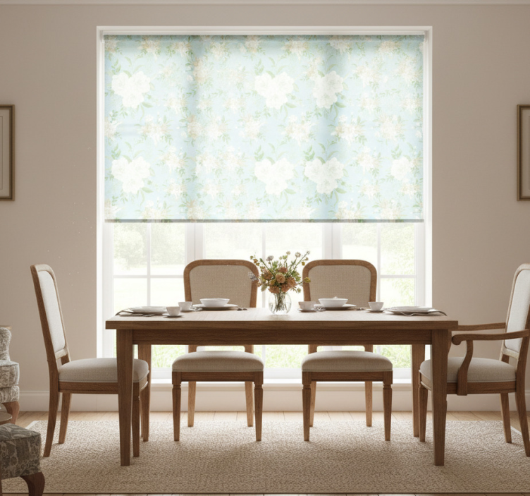 Reference: E6571Transform your dining area with our Wild floral grandmillennial style dining room roller blind, a stunning blend of contemporary design and nostalgic charm. Featuring a delightful wild floral pattern that embodies the grandmillennial aesthetic, this roller blind adds a touch of elegance and warmth to your space. Its vibrant colors and intricate floral designs harmoniously enhance your dining room decor while providing functionality and style.