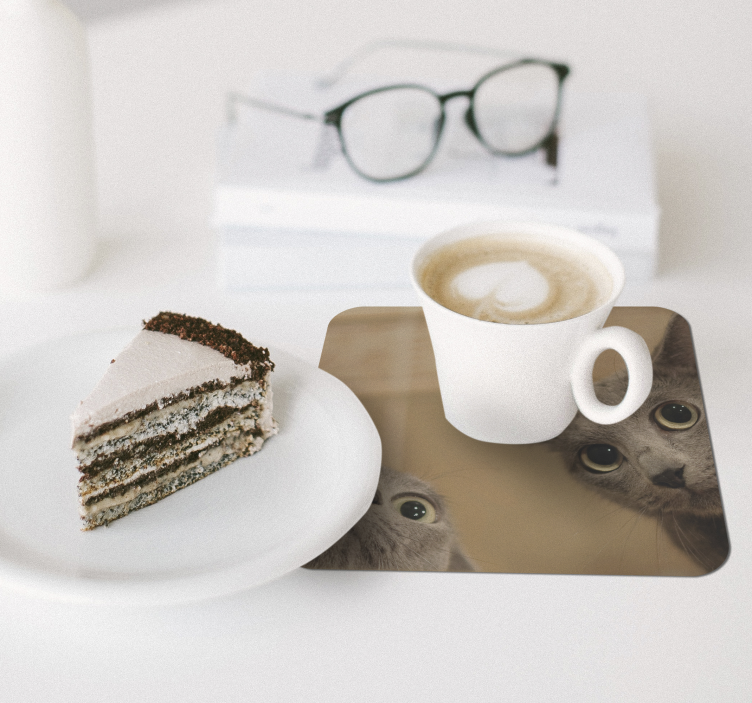set! It features an adorable image of two cats looking out on a brown background. The cats have adorable big eyes which will make any person's heart melt! You won't be able to stop looking at your brand new adorablecoaster set