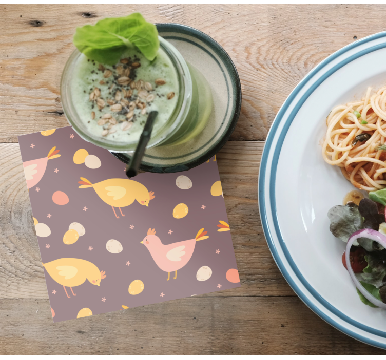 Introducing our Wedding coasters charming birds design, a delightful addition to your special day! This whimsical design features playful chickens, adorable birds, and charming eggs all intertwined in a cheerful pattern. With its vibrant pastel colors, this coaster set brings a cute and joyful spirit to your decor, ideal for creating a warm and inviting atmosphere at your wedding celebration!