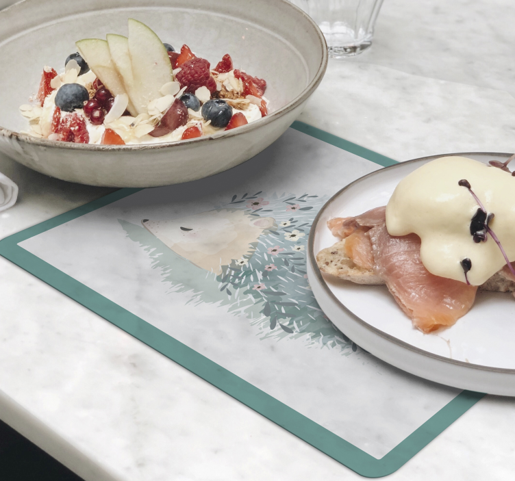 Introducing our delightful Children placemat with cute hedgehog illustration, featuring an enchanting design that brings the whimsical world of nature to your dining table! This vibrant placemat showcases a charming porcupine and hedgehog set against a stunning marble backdrop using a beautiful watercolour technique. The playful elements of flora and fauna create a captivating children's design that not only entertains but also sparks imagination during mealtime. Transform your child's dining experience with this adorable piece!