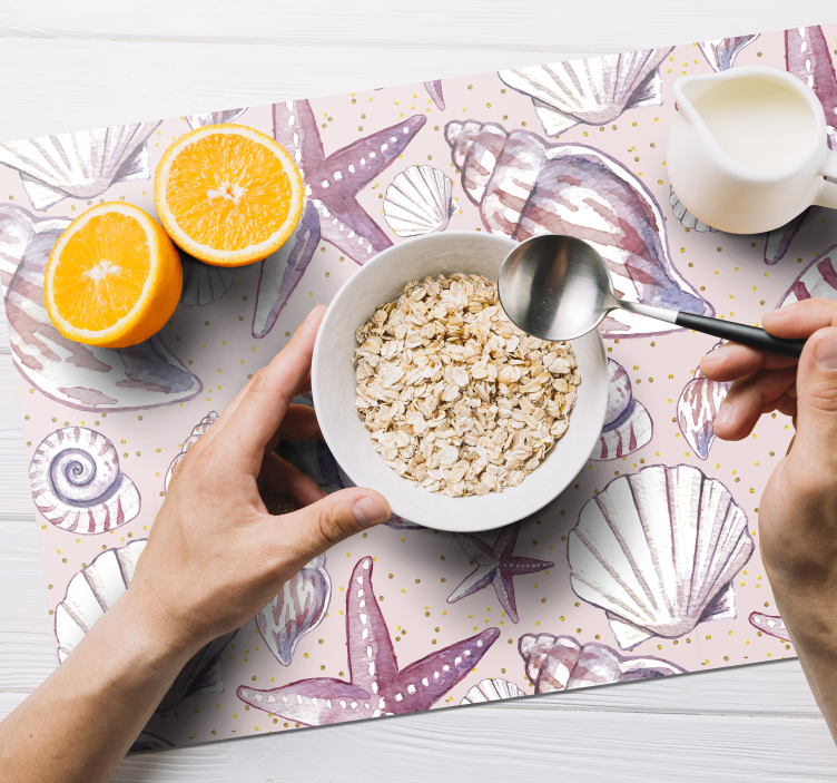 Caring for your Shell print motif placemat is a breeze! Simply wipe it down with a damp cloth or sponge for quick clean-ups. Its stain-resistant and waterproof nature ensures that spills won't ruin the lovely design, allowing you to enjoy your meals without worry!