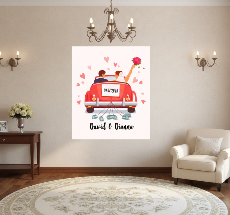 Reference: G1088Introducing our stunning Event poster just married couple, designed to capture the essence of love and celebration! This artistic creation features a charming couple in a blissful embrace, surrounded by vibrant colors and whimsical elements. Crafted with a 180g/m2 grammage, this poster boasts a semi-matt finish that prevents reflections and enhances the high color intensity, making it a perfect addition to any wedding-themed decor.