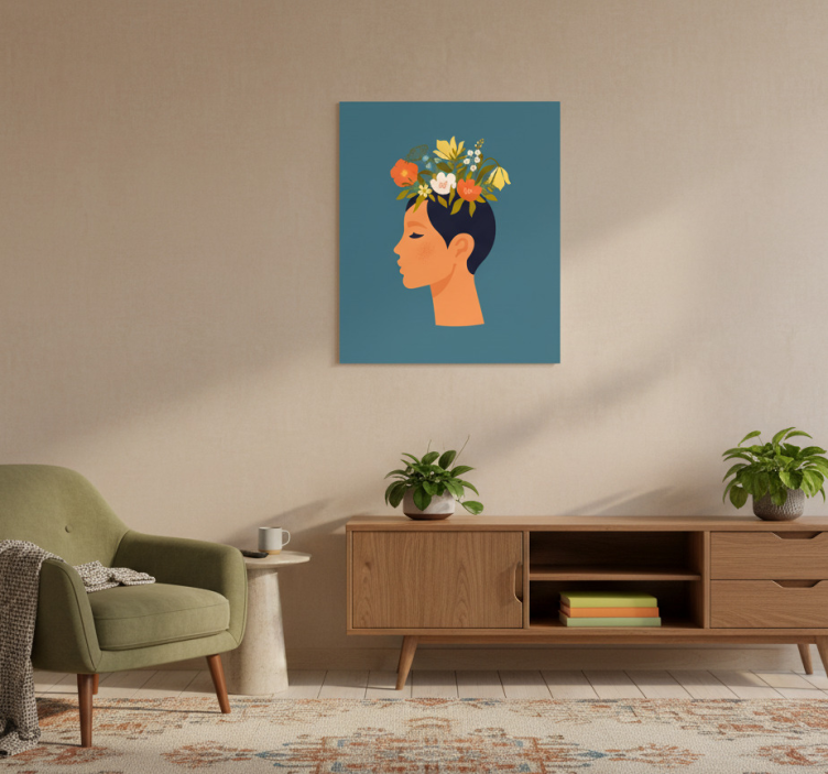 Transform your living space with the Flower poster abstract woman on blue background flower poster, designed to inspire and uplift your surroundings. This artwork not only adds a splash of color but also serves as a conversation starter, effortlessly enhancing your home decor. Whether placed in a cozy reading nook or a vibrant living room, this poster brings a touch of elegance and creativity that can invigorate any room!
