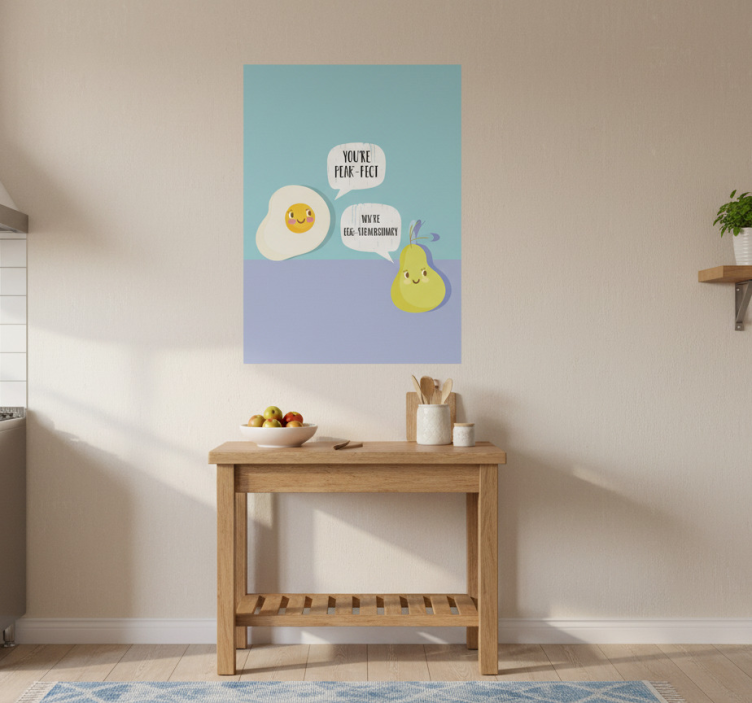 The Kitchen poster: egg-cellent pear delight kitchen poster is the perfect decorative piece to uplift your kitchen atmosphere! Its vibrant and cheerful design inspires joy and creativity in your cooking space, making it an excellent choice for those who love to infuse their home with personality. Brighten your walls with this delightful art that encourages culinary exploration and makes every meal a celebration of flavor!