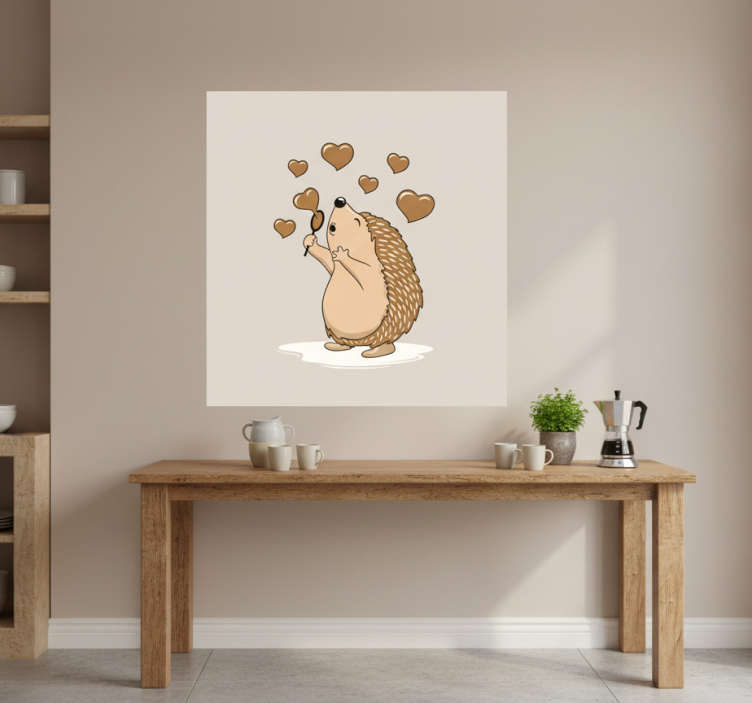 Reference: G601Introducing our charming Kitchen poster hedgehog with love hearts, a delightful addition to your culinary space! This beautifully designed poster features a whimsical hedgehog surrounded by vibrant love hearts, crafted with a semi-matt finish that ensures no reflections distract from its high color intensity. Printed on 180g/m2 paper, it guarantees durability while enhancing the visual appeal of your kitchen.