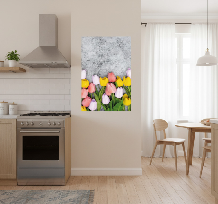 For easy installation, we recommend using double-sided adhesive tape on the back of the Kitchen poster of similar tulip flowers kitchen poster art. Simply stick the strips to the back, hold each strip firmly for 10 seconds, and enjoy your new art piece! Alternatively, consider framing it for a more polished look, or opt for thumbtacks and reusable blu-tack for a flexible display.