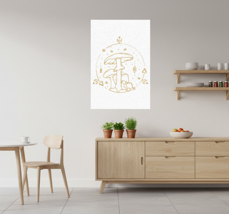 Reference: G654Introducing our stunning Kitchen poster with geometric mushroom monoline design! This eye-catching piece features a unique blend of 180g/m2 grammage, providing the perfect weight for posters, along with a semi-matt finish without reflections that allows the design to shine through. The high colour intensity adds vibrancy to any space, making it a delightful addition to your kitchen decor.