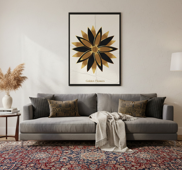 Transform your space with the Living room poster golden flowers art print living room poster! This exquisite artwork not only beautifies your walls but also inspires joy and creativity in your living area. The radiant design encourages a positive atmosphere, making it perfect for gatherings or quiet evenings. Let your home reflect your personality and style with this enchanting poster that serves as a daily reminder of nature's elegance!