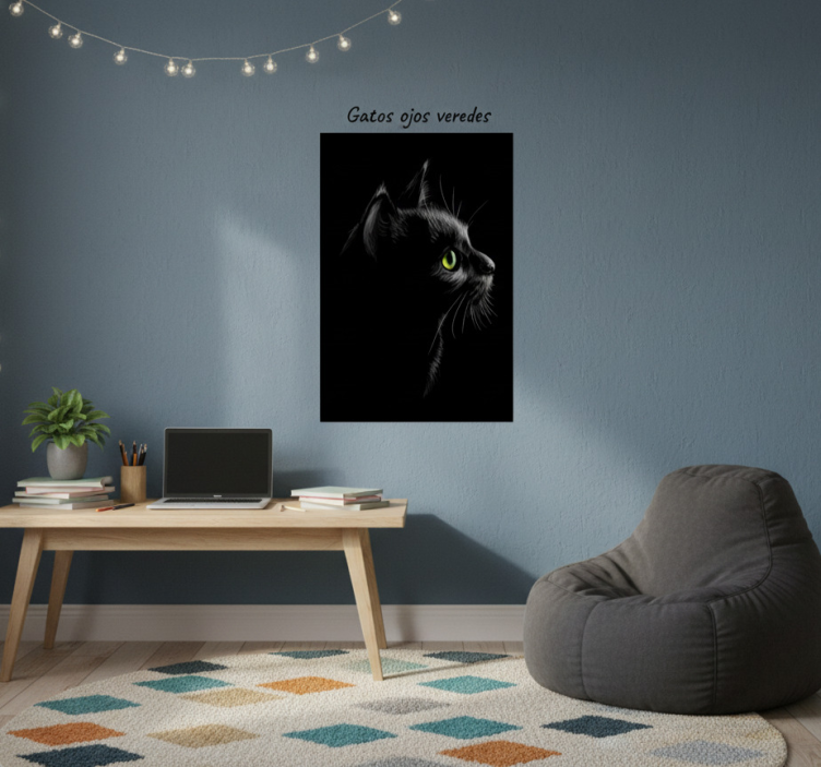 For an effortless display, the best option is to use double-sided adhesive tape on the back of the Living room poster green eyed cats wall posters for living room. Simply stick the strips to the back and hold each strip firmly for 10 seconds. Alternatively, you can frame it or use thumbtacks and reusable blu-tack for a versatile installation!