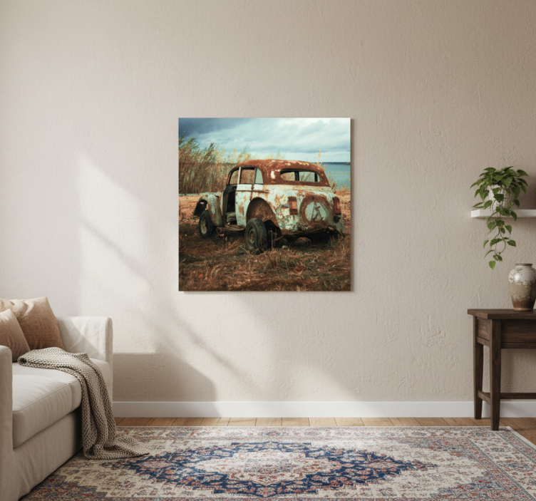 The Living room poster of an old dirty car in the fields living room poster is more than just a decorative piece; it’s a conversation starter! This artwork inspires a sense of adventure and nostalgia, evoking memories of road trips and summer days spent exploring. Ideal for those who appreciate the beauty in decay and the stories behind old cars, this poster adds character to your space, making it warm and inviting. Elevate your living room’s ambiance with this unique piece that reflects your personality!