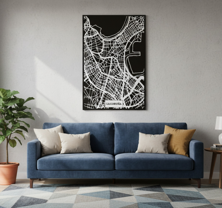 Living room poster topographic map of coruña