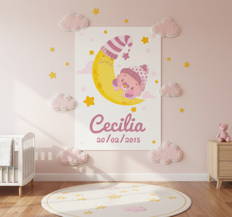 Reference: G922This beautiful Nursery poster baby with name and birth date features a charming design that is perfect to celebrate your little one's arrival! With a semi-matt finish that eliminates reflections, this poster showcases high colour intensity on a sturdy 180g/m2 grammage, ensuring it stands out in any nursery. Its delightful graphics create a warm and inviting atmosphere, making it a treasured keepsake for parents and children alike.