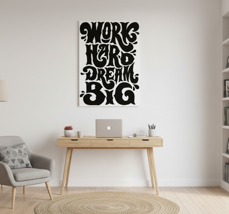 Reference: G694The Office poster work hard dream big is a visually stunning piece designed to inspire and motivate. With a semi-matt finish that eliminates reflections, this poster showcases high colour intensity on a durable 180g/m2 grammage paper, making it an ideal choice for vibrant decor in any workspace. The design beautifully blends motivational quotes with captivating graphics, creating an uplifting atmosphere that encourages productivity and creativity.