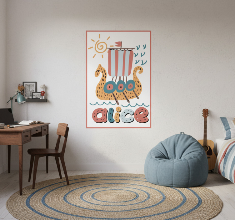 Reference: G747Introducing our stunning Poster for teenager viking ship custom made, designed to ignite the imagination of any young adventurer! This eye-catching poster features a vibrant depiction of a majestic viking ship sailing through turbulent seas, with high colour intensity that brings the scene to life. The semi-matt finish ensures no reflections interfere with the artwork, allowing for a clear and striking visual experience. Crafted with 180g/m2 grammage, it's perfect for display in any teenage room!