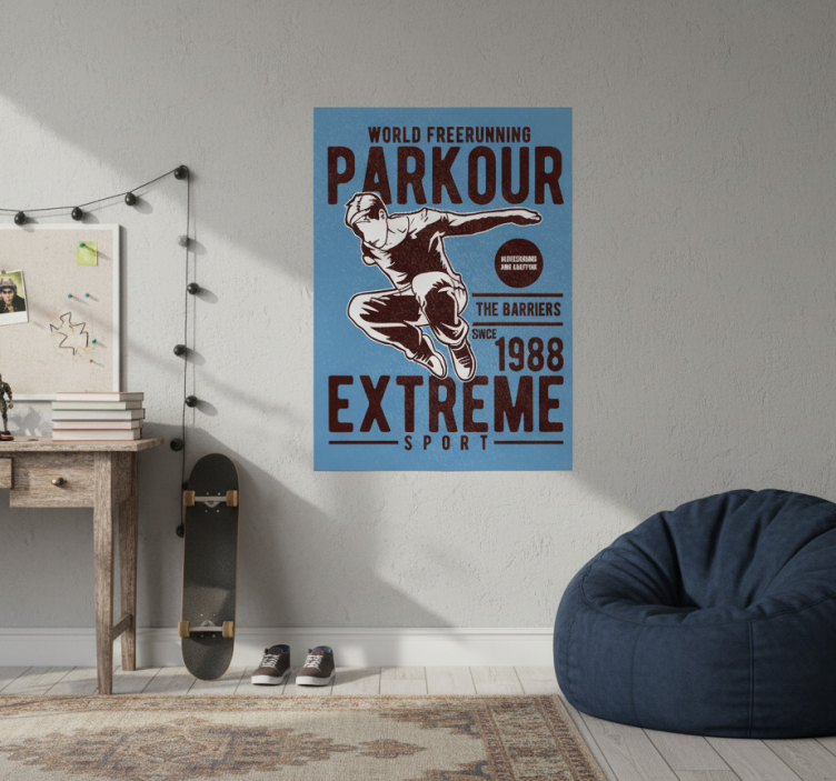 Reference: G722Introducing our stunning Vintage parkour poster for teenager, a captivating piece that perfectly captures the spirit of youth and adventure! This design features vibrant colors, high color intensity, and a semi-matt finish that ensures no reflections distract from its charm. Crafted on 180g/m2 grammage paper, this poster is ideal for showcasing your passion for parkour in a stylish way.