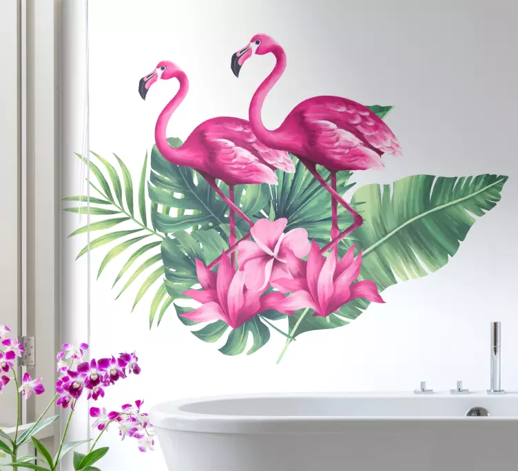 Transform your living space with our Bird wall sticker flamingos and foliage design, featuring stunning flamingos amidst a vibrant tropical backdrop of lush leaves and blooming flowers. This delightful design bursts with pink hues and captures the essence of nature, bringing a refreshing touch of the tropics right into your home. Let the beauty of flamingos and foliage inspire your decor!