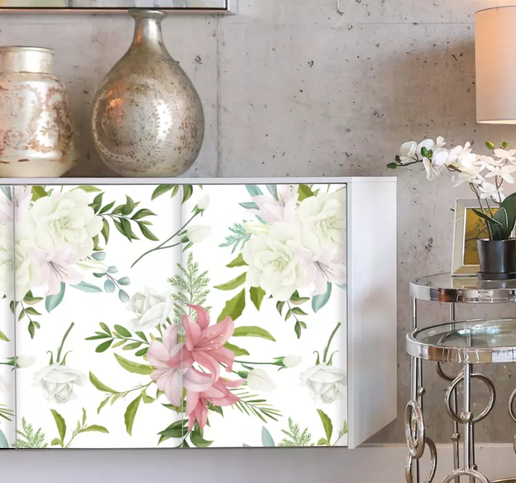 Transform your space with our stunning Bloom composition style wall sticker, a captivating design that beautifully blends floral elements with a delicate watercolour pattern. This enchanting piece features vibrant flowers, lush plants, and an array of greenery that brings the essence of nature indoors, making it the perfect addition to enhance your furniture and drawers.