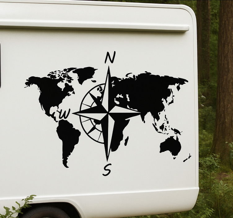 Reference: A53896Transform your space with our stunning Campervan decal world map with compass. This beautifully designed decal features a detailed world map complemented by an elegant compass, making it a perfect addition for any adventurer. The vibrant colors and intricate graphics are sure to inspire wanderlust, allowing you to dream of your next journey every time you glance at it!