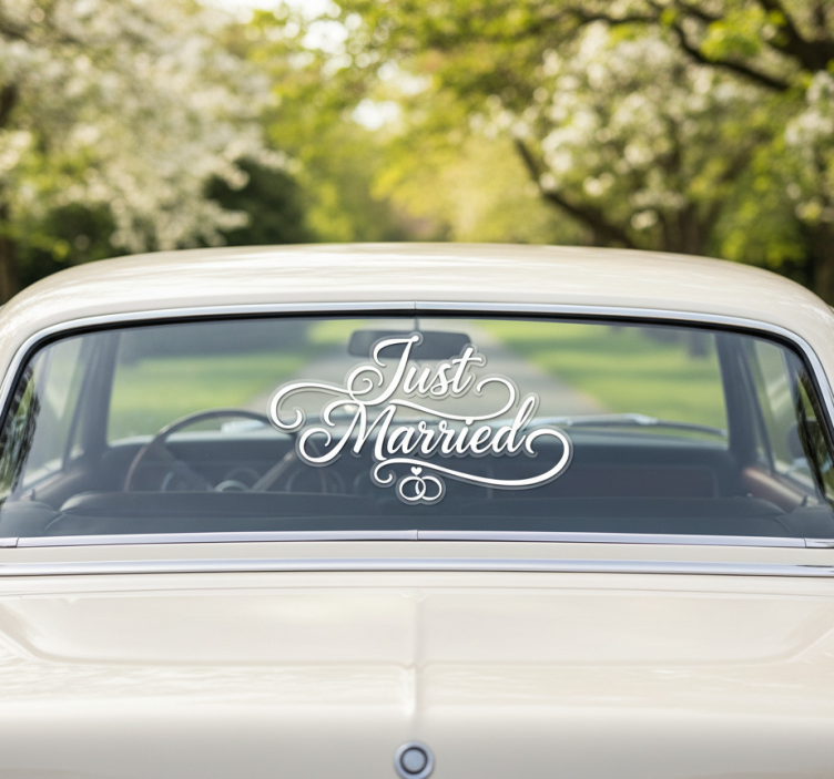 Reference: A54709Introducing our stunning Car sticker custom cursive "just married" design, perfect for celebrating your special day! This elegant sticker features flowing cursive lettering that elegantly conveys your newlywed status, making it an eye-catching addition to your vehicle. The beautiful design is crafted to enhance any car's appearance while showcasing your joy and love. With a satin finish that minimizes glare and maximizes color intensity, this sticker is not just a decoration, but a heartfelt expression of your commitment.
