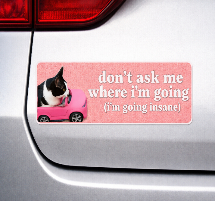 Reference: A54647Introducing our stunning Car sticker don't ask me where i'm going that features a unique and engaging design! This eye-catching sticker showcases a playful blend of typography and graphics, making it a perfect addition to your vehicle's aesthetic. With its vibrant colors and captivating message, this sticker not only adds flair to your car but also sparks curiosity wherever you go!