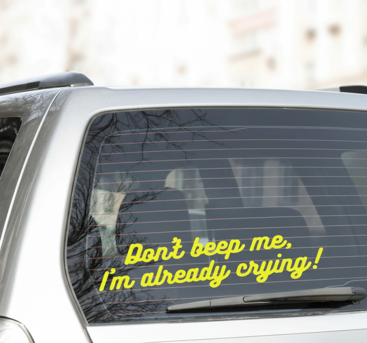Reference: A54680Introducing the Car sticker don't beep i'm crying, a unique and expressive design that resonates with anyone who has felt overwhelmed. This eye-catching sticker features a playful graphic that combines humor with a touch of melancholy, making it a perfect addition to your vehicle. The vibrant colors and engaging design beautifully capture the essence of the phrase, allowing you to showcase your personality and emotions on the go!