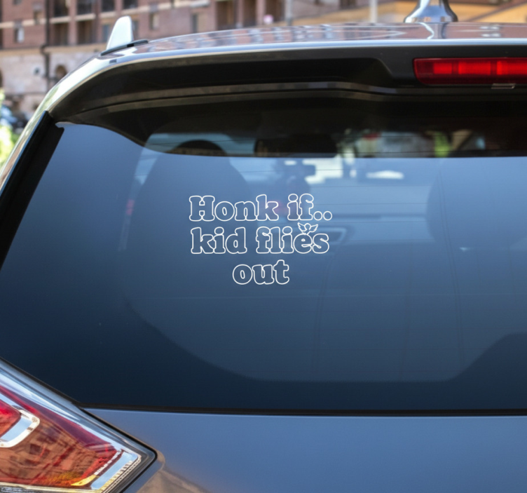 Reference: A54691Introducing our vibrant Car sticker honk if kid flies, a delightful design that captures joy and whimsy! This eye-catching sticker features playful graphics that will make any car stand out on the road. The bright colors and fun typography ensure that your message is clear while adding a touch of personality to your vehicle.